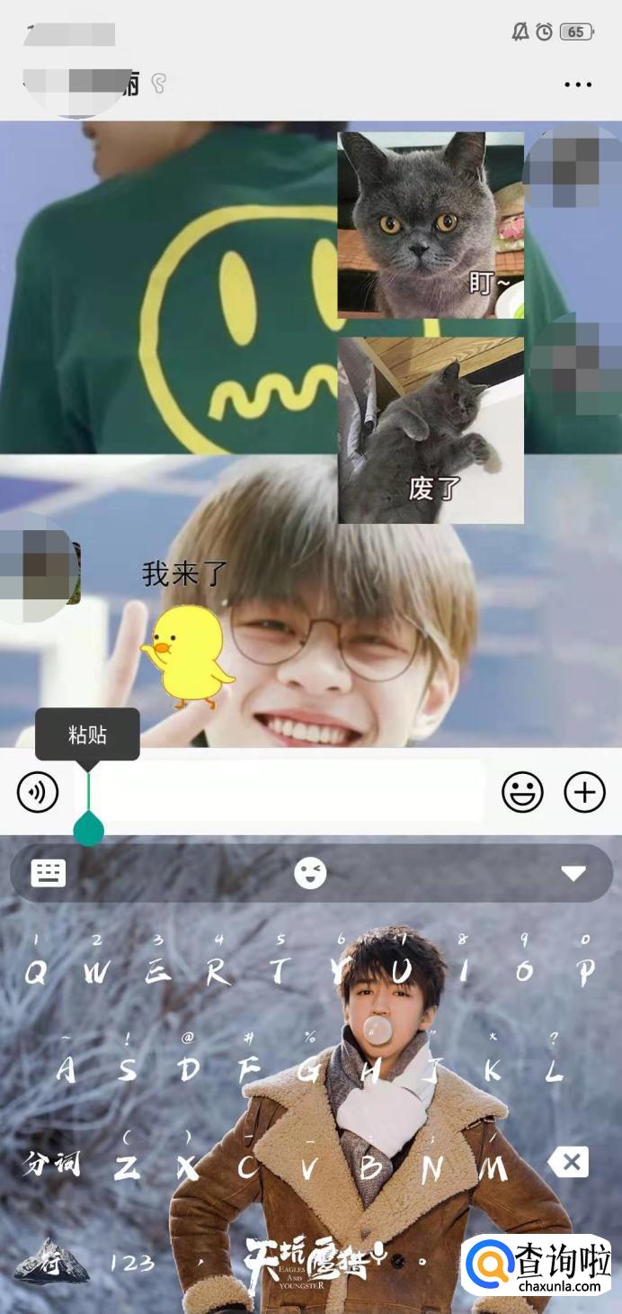 随后在想要复制的人的聊天界面输入框中长按即可出现“粘贴”选项,点击即可。
