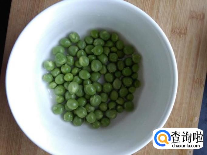 将买来的豌豆剥壳,豆米洗干净,捞出沥干水分