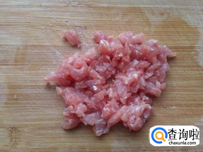 将猪瘦肉洗干净,切成肉丁