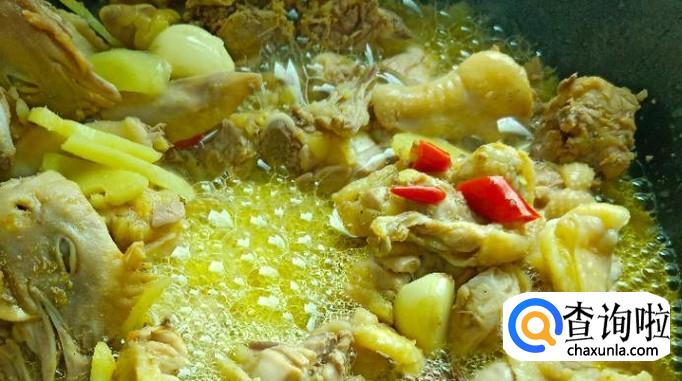 锅中烧油,放入香料烹香