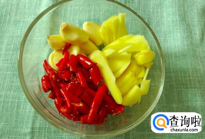 生姜、大蒜、花椒、辣椒切碎备用
