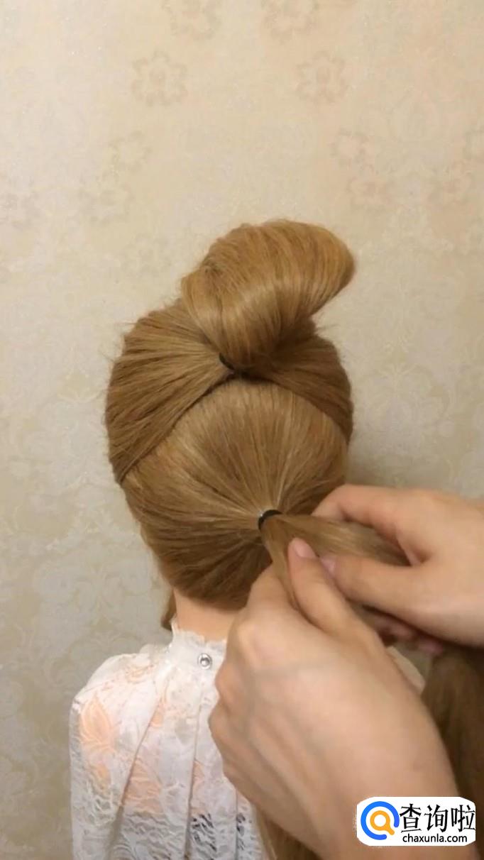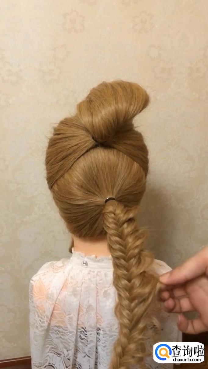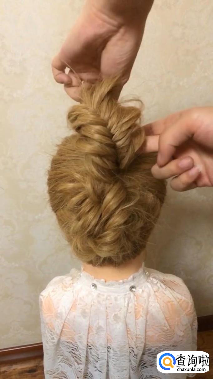将下面的头发也扎好,扎完后,将头发变成鱼骨辫。