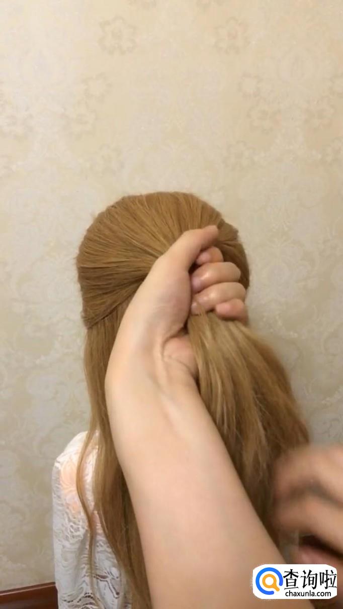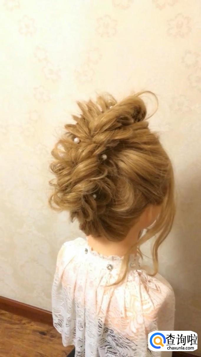 将头发轻轻扯出少许,营造自然蓬松感。最后将珍珠发饰装饰上就完成了!