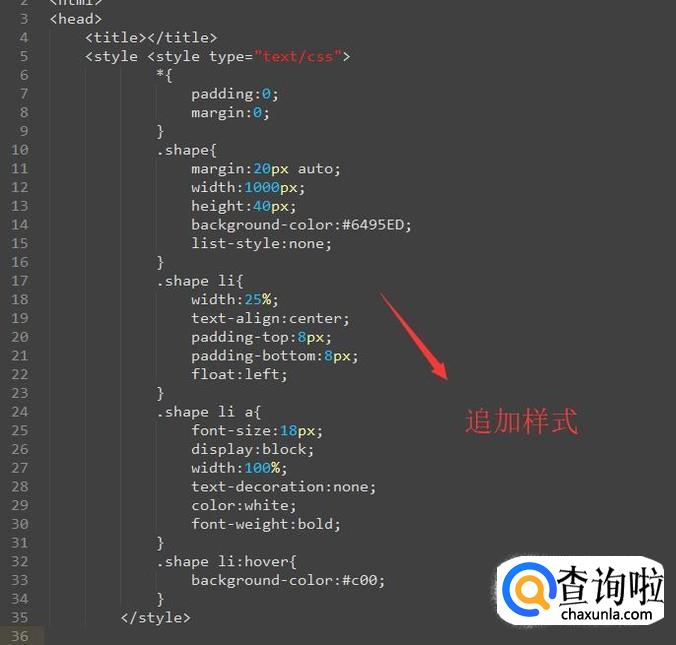 然后就需要在style标签中用CSS对导航条的样式进行定义了,如下图所示,书写样式的时候一定要注意写在style标签里面