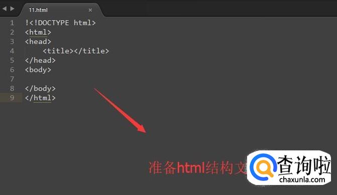首先打开Sublime Text软件,新建一个html页面,并且在html页面中准备好html结构,如下图所示