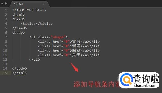 接下来我们在html的body结构里添加导航条的内容,如下图所示