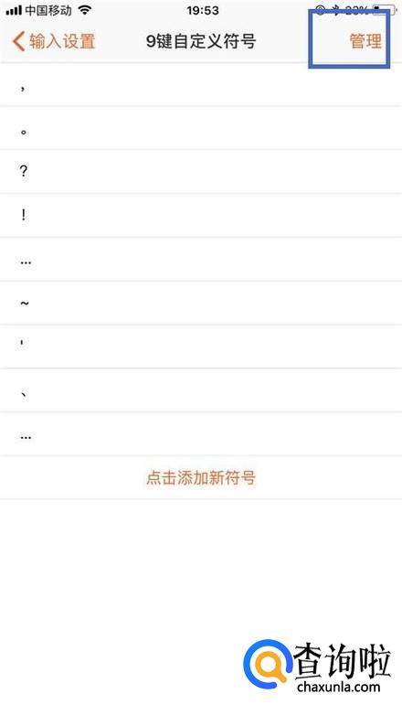 你还可以点击屏幕右上翻的管理,对自定义符号进行管理。