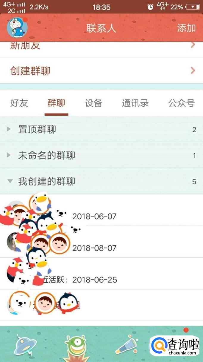然后我们在好友列表点击群聊,再找到一个自己要全员禁言的群,点击进入到聊天状态。