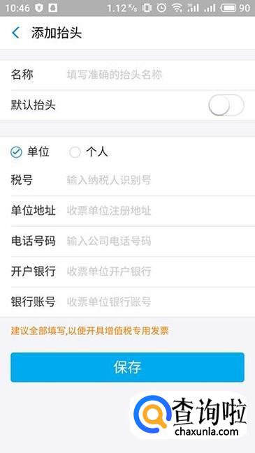 如果想要添加抬头信息的话,点击“新增”,按照系统要求输入信息,点击“保存”就行了。