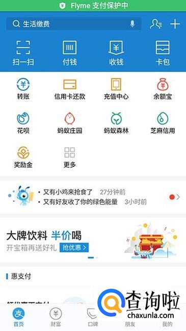 进入支付宝APP界面,在首页界面点击“更多”进入。