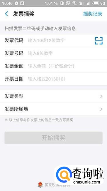 在“发票摇奖”界面,根据相关提示信息,用户填写之后就能够进行摇奖了。