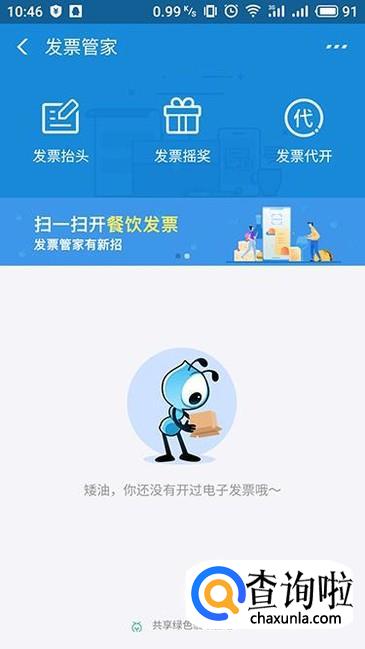 进入发票管家界面,我们能够看到一共有抬头、摇奖以及代开三个功能,在下方就是开过发票的记录。