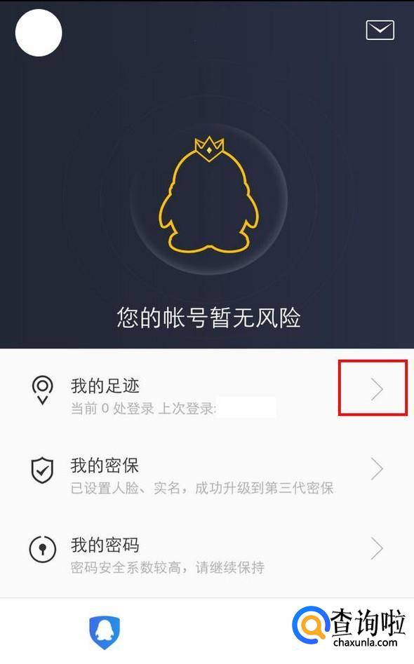 再来看QQ,QQ有一款专门管理账号安全的APP,叫做“QQ安全中心”,打开APP首页就有登录信息选项,叫做“我的足迹”,点击进入;