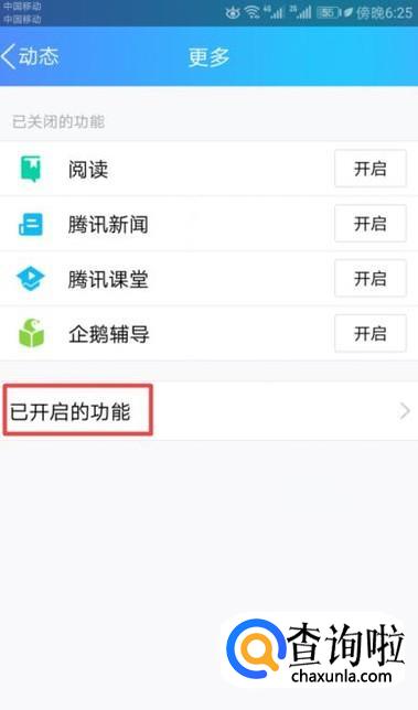 弹出的界面,我们点击已开启的功能;