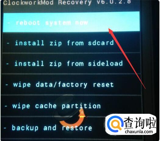先选择第一条“wipe data/factory reset”(清除所有信息,恢复出厂设置)选项。按电源键确认。