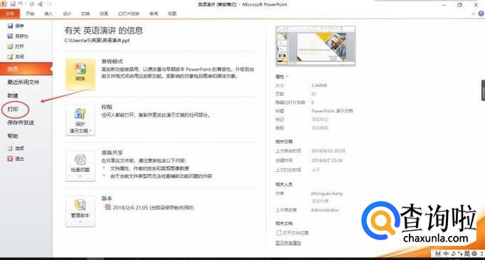 打开需要打印的ppt,在页面上方点击“文件”。