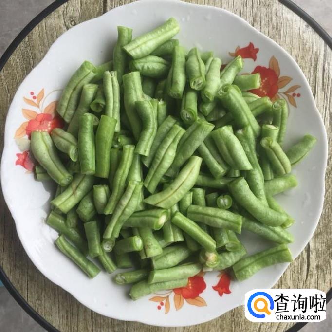 将四季豆的头尾撕掉,洗净后,切成2-3cm长的小段;今天的四季豆会有清炒的环节,如果是不新鲜的四季豆,清炒就不好吃了;