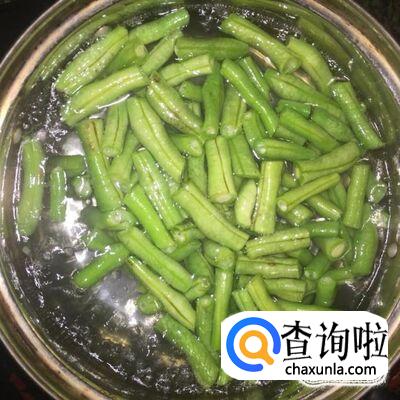 四季豆不容易熟;我们将四季豆下入锅里,加水先煮到八九成熟,再捞出沥干水分;