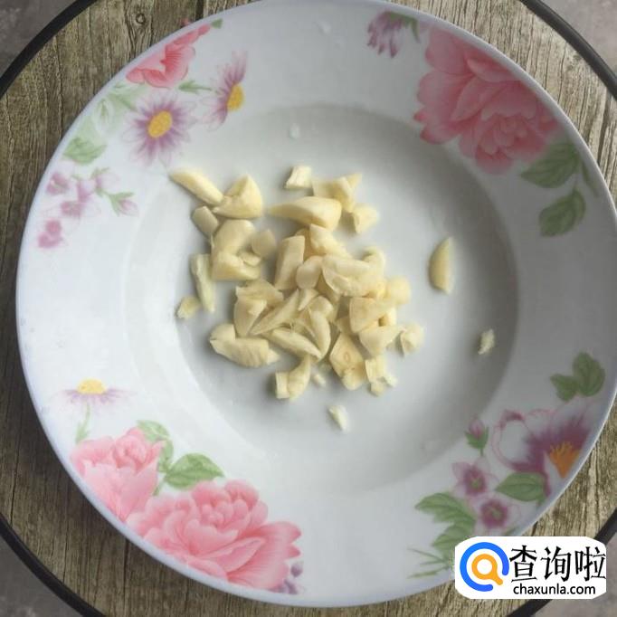 取三四个蒜头,将蒜头的膜撕掉,洗净后,再切碎一点;