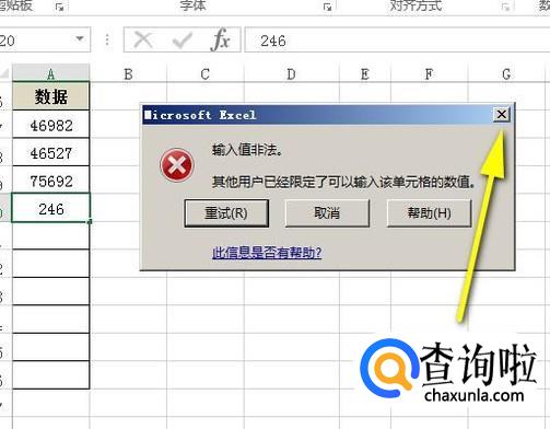 先把这警告语关闭。A20单元格所输入的数值即自动消失。