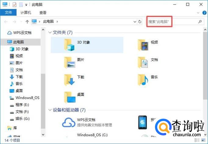 进入此电脑之后,我们点击搜索框;