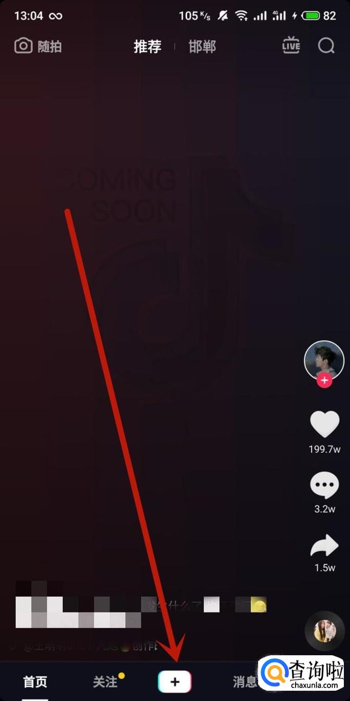 进入抖音,点击“+”,进入下一页面,如图所示。