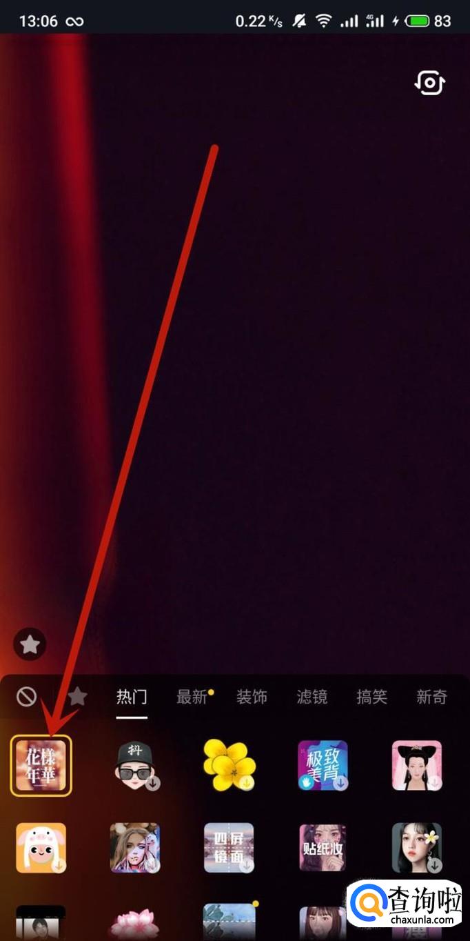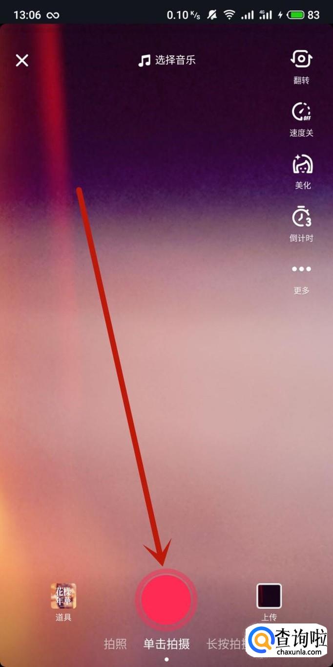 选中特效之后,返回到拍摄页面,点击“单击拍摄”,如图所示。
