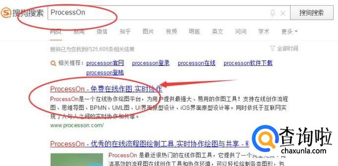 在浏览器中搜索【ProcessOn 】,点击相关链接,如下图所示: