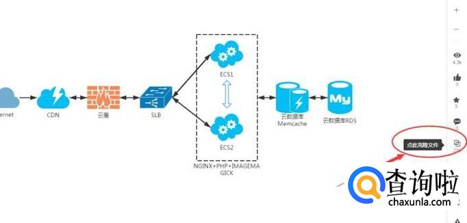 然后找到差不多的网络拓扑图,再点击【克隆此文件】即可克隆到自己的界面上,还可以对文件进行修改操作,如下图所示:
