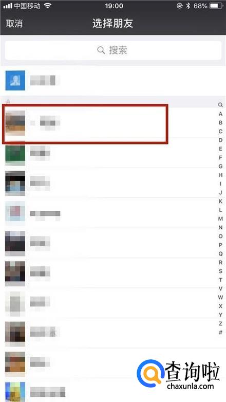 然后选择要分享的好友并点击它,如下图所示