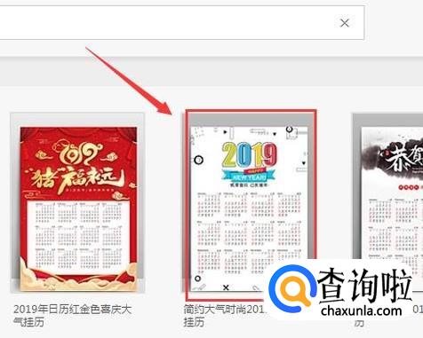 点击2019日历选项,我们再在弹出的界面内选择需要的日历风格,如图所示:
