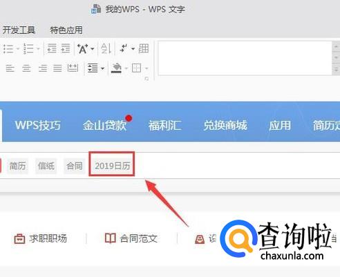 点击从更多模板新建选项,在弹出的界面内找到2019日历选项,如图所示: