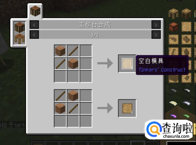 匠魂改进了工具制作的一般方法,我们没办法简简单单在工作台里面一合成就得到想要的工具,首先我们需要做一些空白模具。