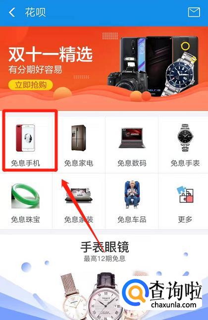 可以看到“免息手机”,点击进入“免息手机”。