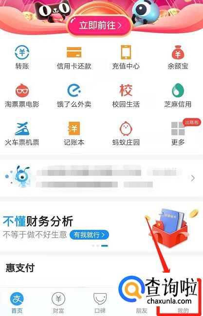 打开支付宝,进入支付宝主界面。