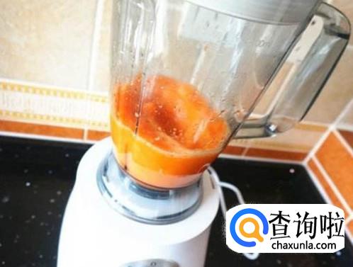 把切好的胡萝卜块放入丁榨汁机中,开启按钮。