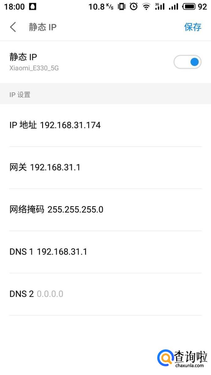 进入静态IP设置界面,开启静态IP,然后修改IP地址最后的3位数即可。