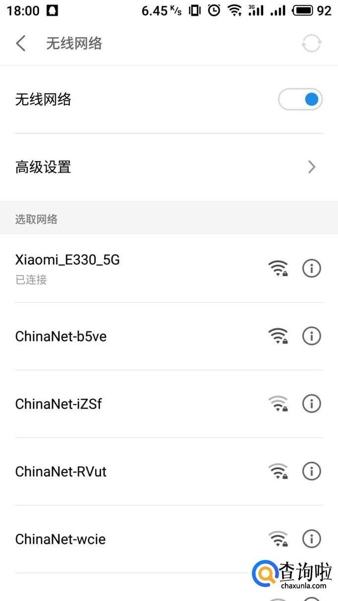 进入无线网路列表界面,在选取网络中点击进行设置的网络。