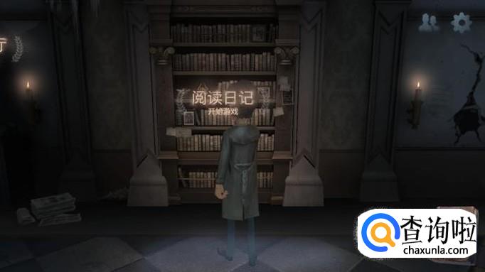 打开第五人格首页,跟着脚印,移动到壁橱旁,点击阅读日记