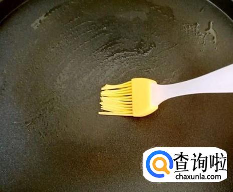 将电饼铛预热,用小刷子在电饼铛上刷少许的食用油,将油抹匀。