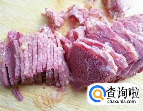 如果想把牛肉切得很薄,就要放入冰箱冷冻室冻到微硬,这样才能切出均匀的薄片。