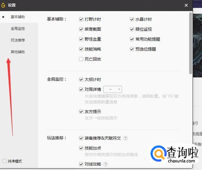 然后在左下角找到辅助这个按键,然后点击进入。