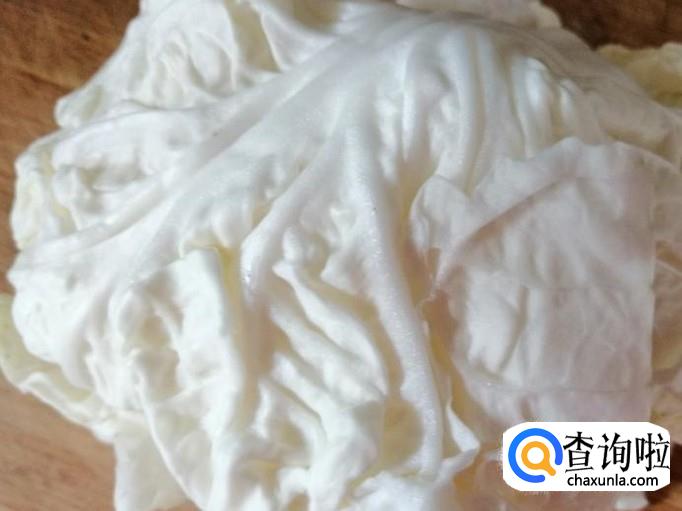 取鲜嫩的白菜心适量,用清水冲洗干净,切成细丝控水待用。白菜心用量根据吃饭人多少来定,人多的话可以适量加量。