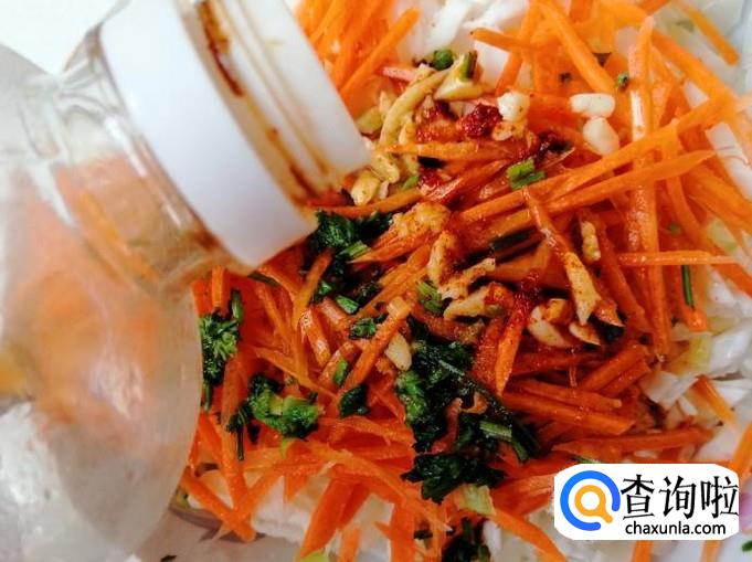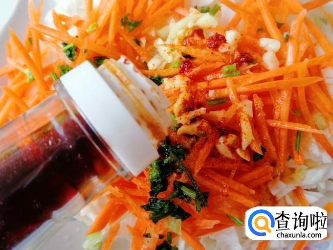 最后放入适量生抽,少许香醋,喜欢香油和味精的也可以加入,最后搅拌均匀就可以了,这样我们的胡萝卜拌白菜心就做好了。