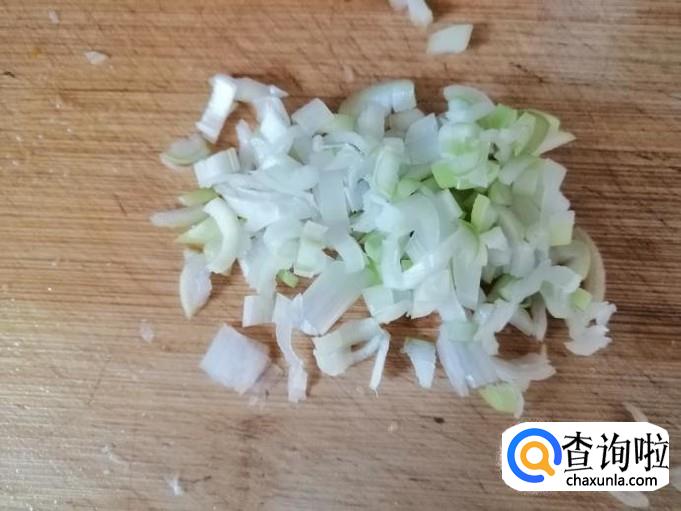 两个蒜瓣剥皮洗净,去头尾用刀背把蒜瓣拍扁,然后剁碎待用,喜欢葱的洗净葱,切成葱花待用。