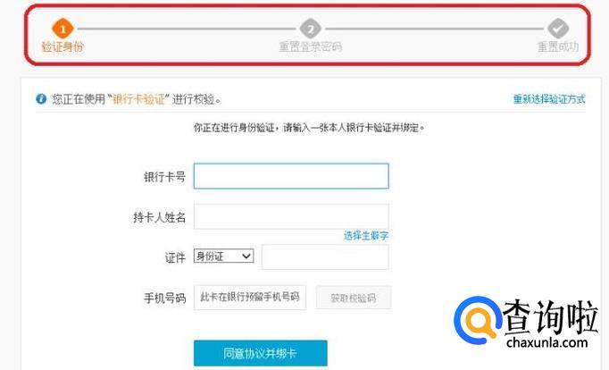 如图所示,我选择了第一种认证方式,即银行卡认证,只要填写正确信息,并经过手机号验证,就可以确认身份并重置淘宝密码了。