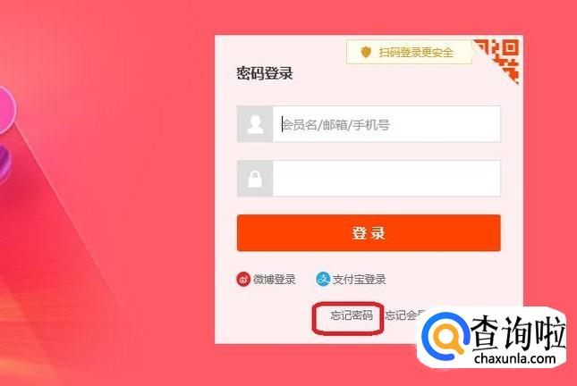 在“密码登录”界面,我们点击“忘记密码”。