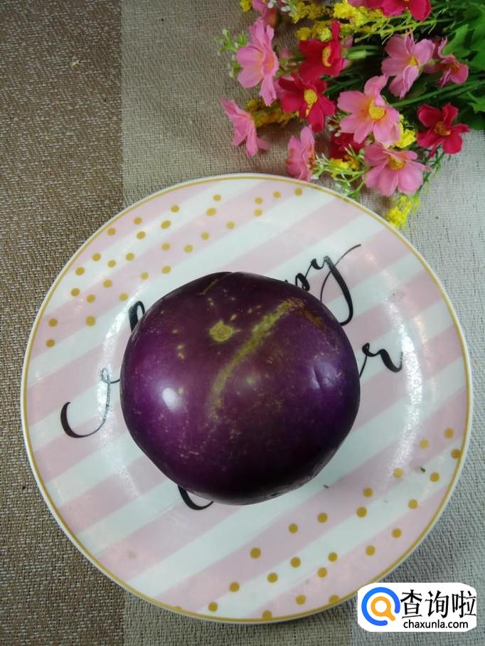 准备一个圆形的紫茄子,洗净;再准备一个鸡蛋备用。用这种紫茄子来做炸茄条,口感更好。
