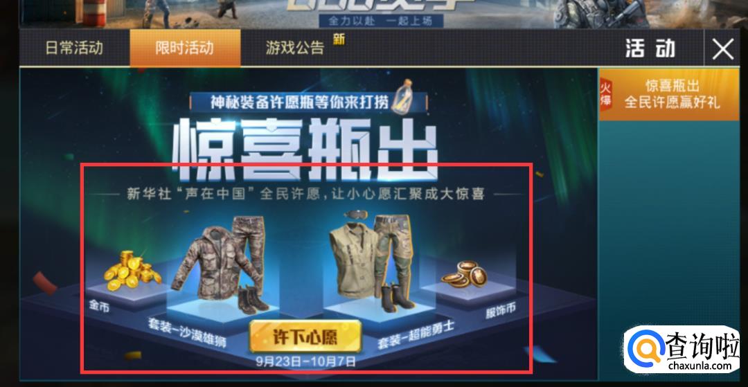 我们可以看到现在有的活动,有一些可以获取套装,有一些可以获取道具然后兑换服装。