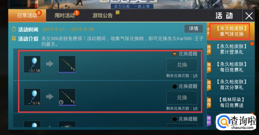 以第一个活动为例,我们可以收集足够的气球就可以兑换98k的皮肤,套装也是如此。